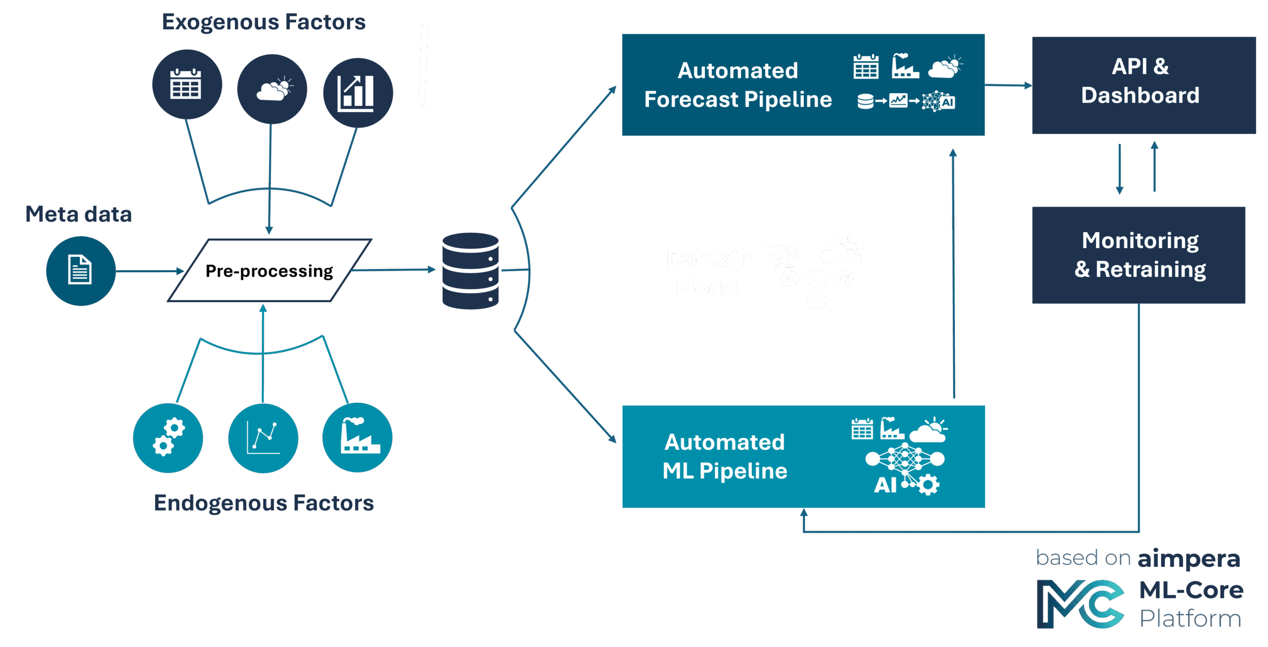 - API & Dashboard – Ausgabe über standardisierte REST-API oder Weboberfläche, inkl. Monitoring & automatischem Retraining